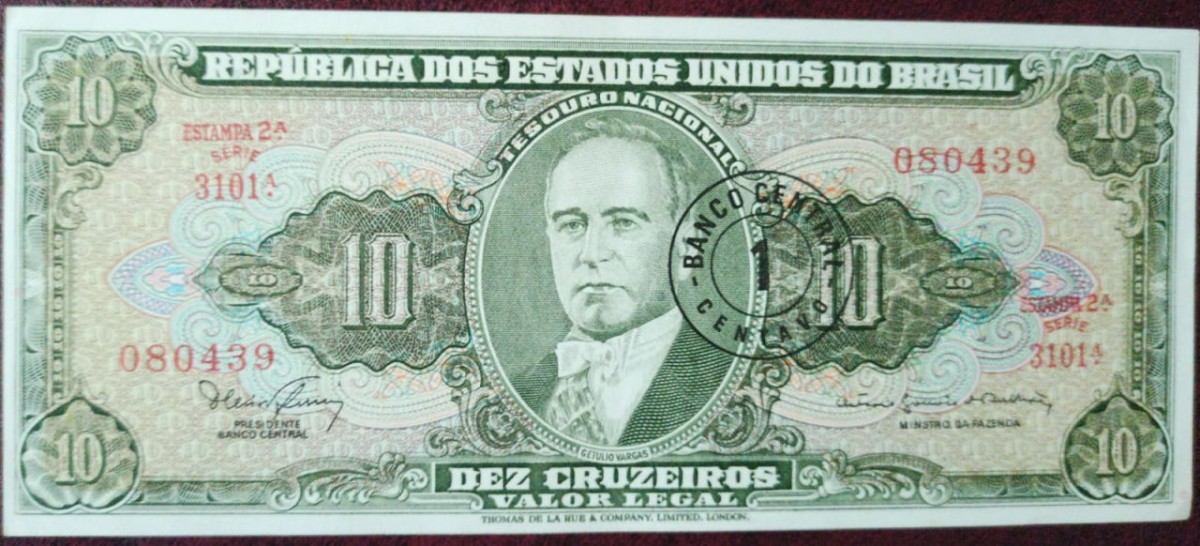 Cédula 10 Cruzeiros com sobretaxa de 1 centavo - Brasil