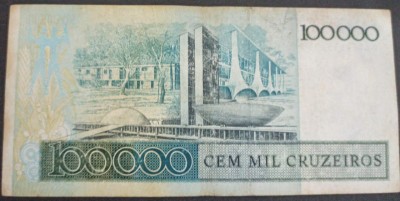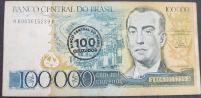 Cédula 100.000 Cruzeiros - Brasil (com sobretaxa de 100 Cruzeiros)